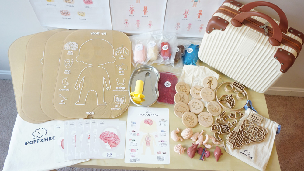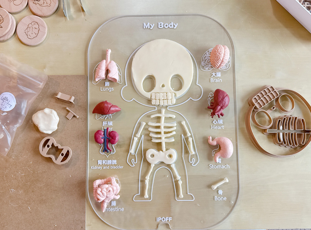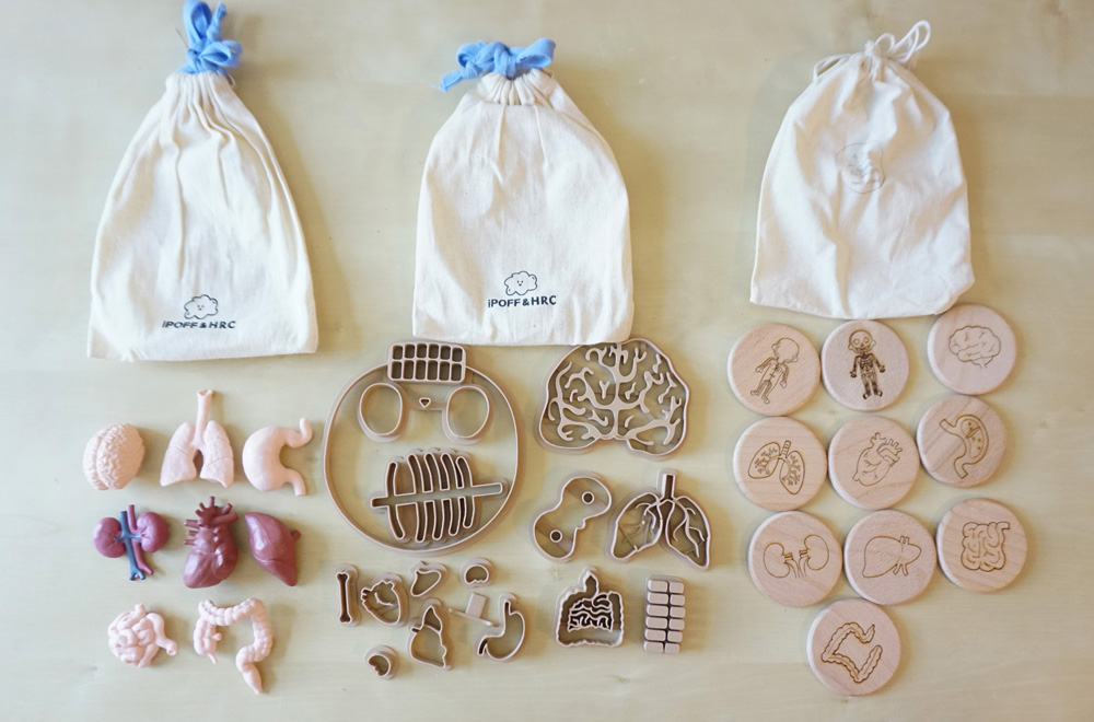 超好玩的兒童STEAM探索系列iPOFF&HRC人體探索益智套組就在『童心星球』,好玩的人體學習教具,內附大全套內附13樣人體教學材料及工具,用遊戲、玩黏土的方式,引導兒童認識身體,激發孩童學習興趣,學習人體的器官形狀板、骨骼板、經絡板,立體器官模型1套(共8個)、 櫸木器官圓片(10個)、 身體造型切模1套組(共16個),手作加深孩人體的認識與記憶力,大推好玩的STEAM組。
