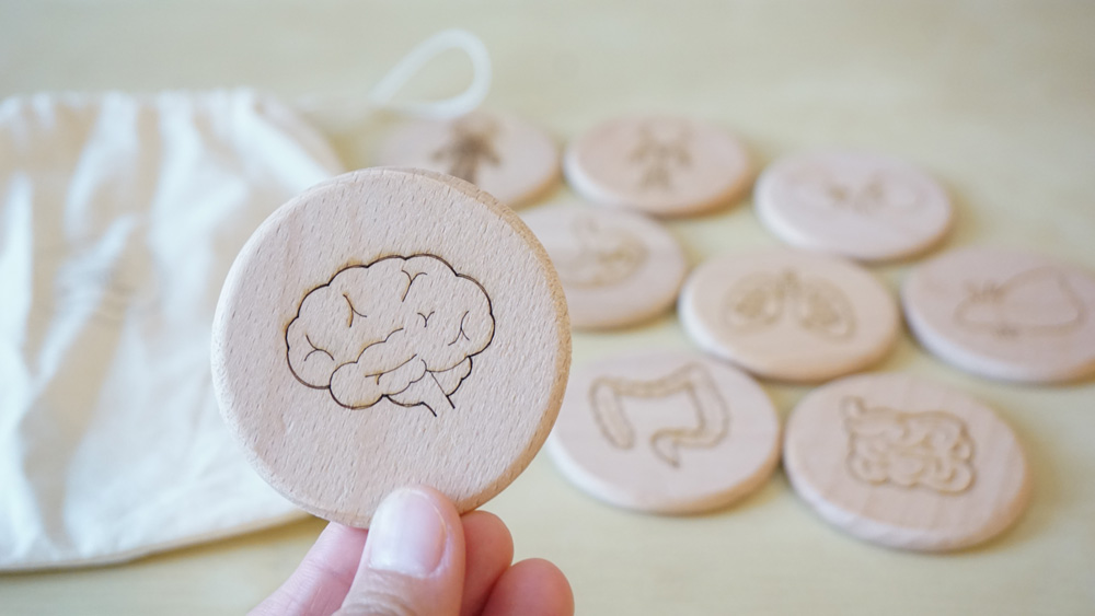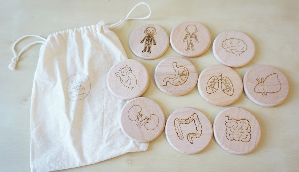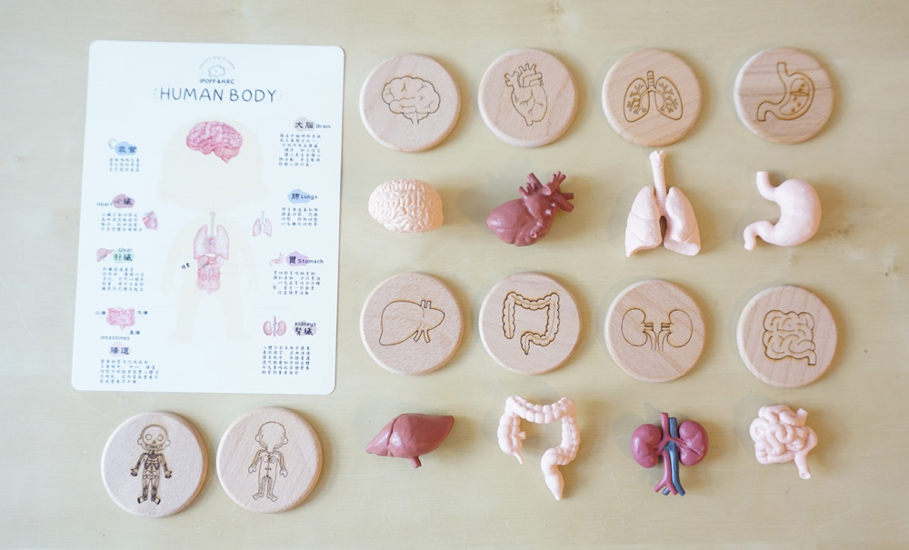 ▼【櫸木器官圓片(共10個)】這一組的櫸木有質感,可搭配Human Body科普卡片、透明壓克力或是器官一起學習。