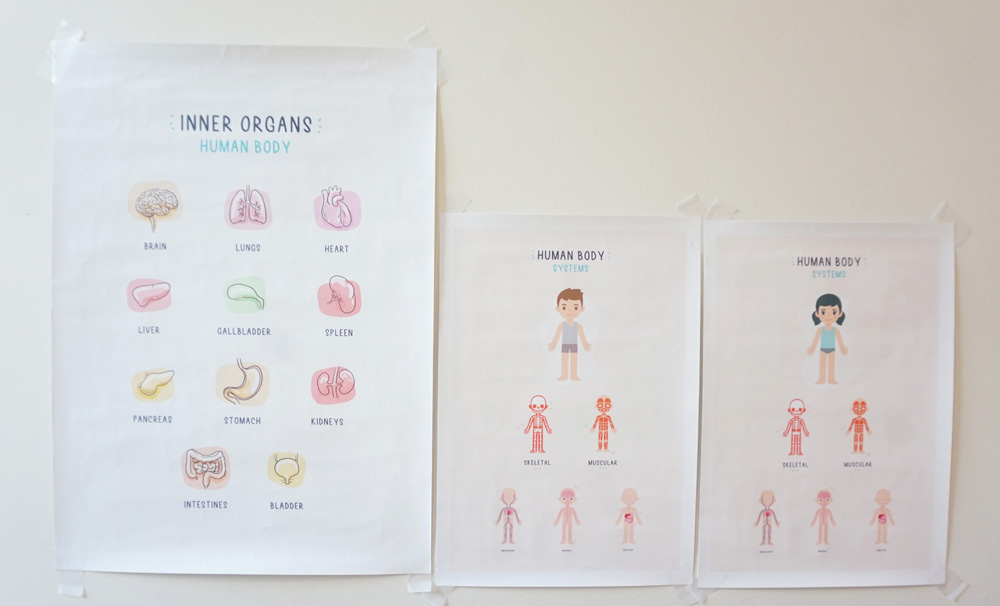 ▼Inner organs A3海報1張、 Human BodyA4海報2張,讓孩童學習器官和MyBody單字,學習同時,可以學習器官的單字與位置。