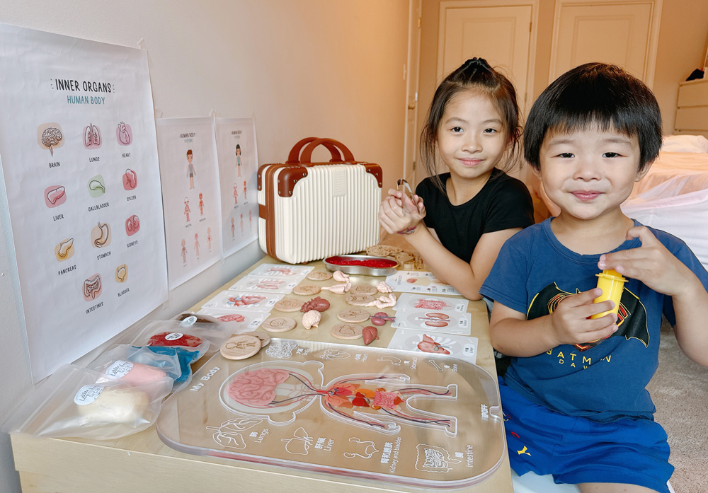 ✔ 模擬小醫生與孩子一起紙上解剖人體