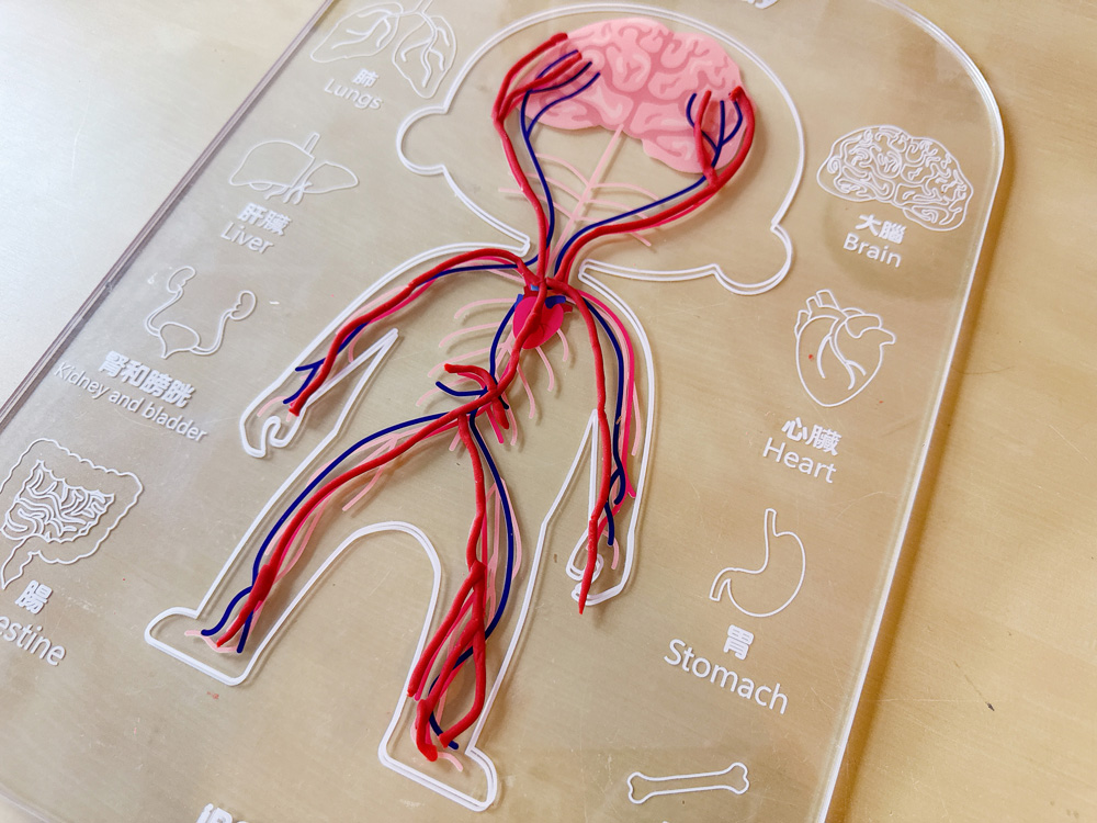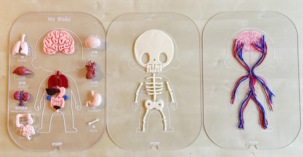 ▼ 透明壓克力板分層身體結構,可認識器官、認識神經、認識骨骼,也可將立體器官放成板子上,讓孩子更了解器官形狀與位置。